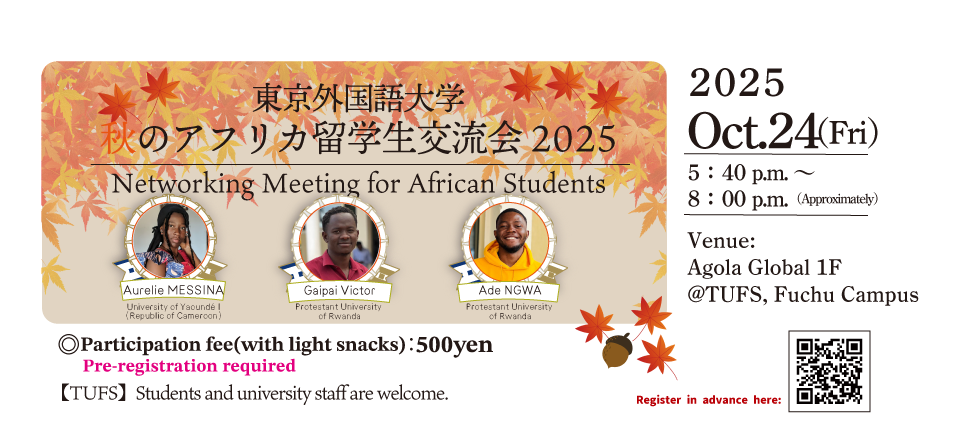 1st Floor, Agora Global, Tokyo University of Foreign Studies, 3-11-1 Asahi-cho, Fuchu-shi, Tokyo